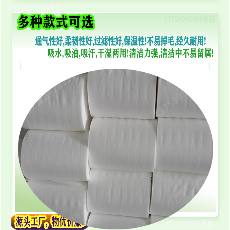 保溫隔音材料、吸油氈、煙過濾嘴、袋包茶袋等。水刺無紡布的特點·非織造布突破了傳統的紡織原理,并具有工藝流程短、生產速度快,產量高、成本低、用途廣、原料來源多等特點。具有阻燃、、拒水、抗靜電。可滲透到衛生防護服、軍事防化服、電子、過濾、包裝等更多領域,起到防水透濕、生化過濾等作用。